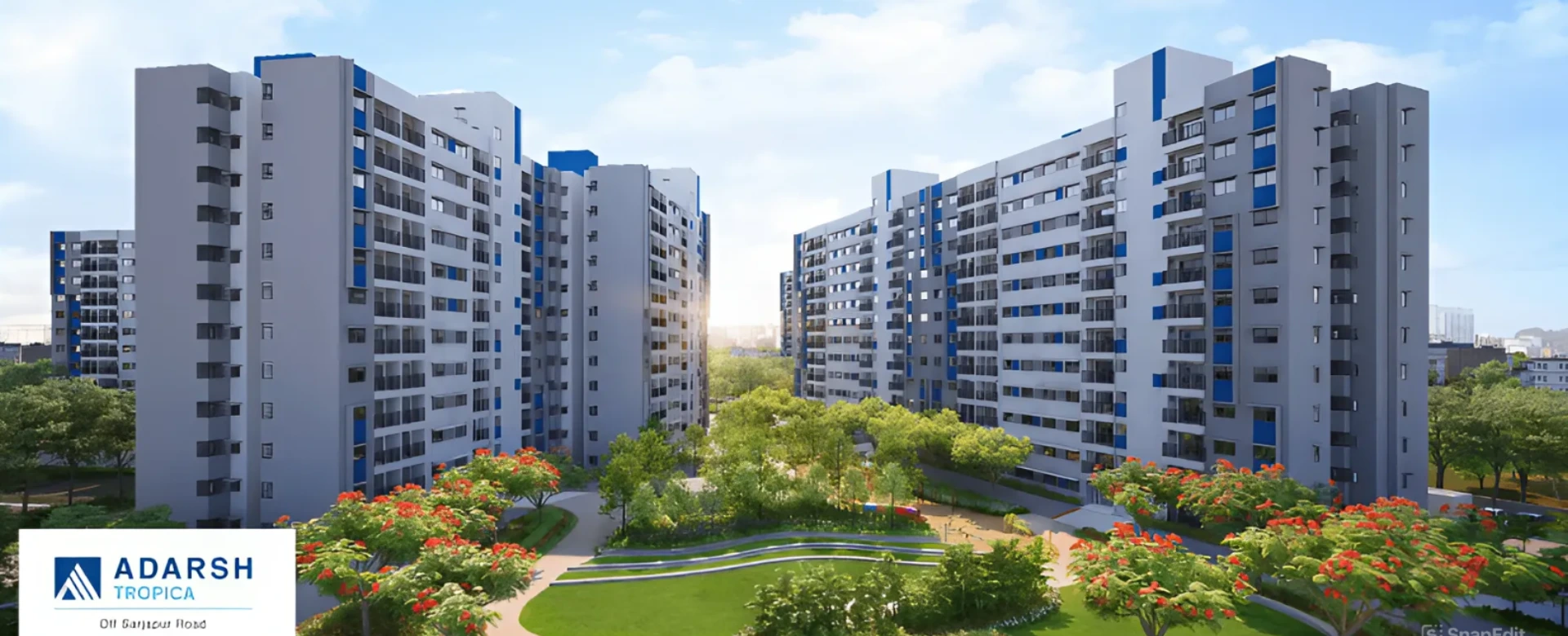 Welcome to Adarsh Tropica Phase 2, off Sarjapur Road, Bangalore is an exquisite new residential apartment project in Choodasandra, Chikkanayakanahalli, just off Sarjapur Road, Bangalore. This premium development by Adarsh Group redefines modern living with its spacious 2.5 and 3 BHK smart apartments, thoughtfully designed to offer luxury, comfort, and convenience. The project boasts state-of-the-art features and world-class amenities, ensuring a sophisticated lifestyle for its residents. With meticulous planning and top-notch construction quality, Adarsh Tropica is set to become a landmark in the area, catering to those who seek an upscale urban experience.